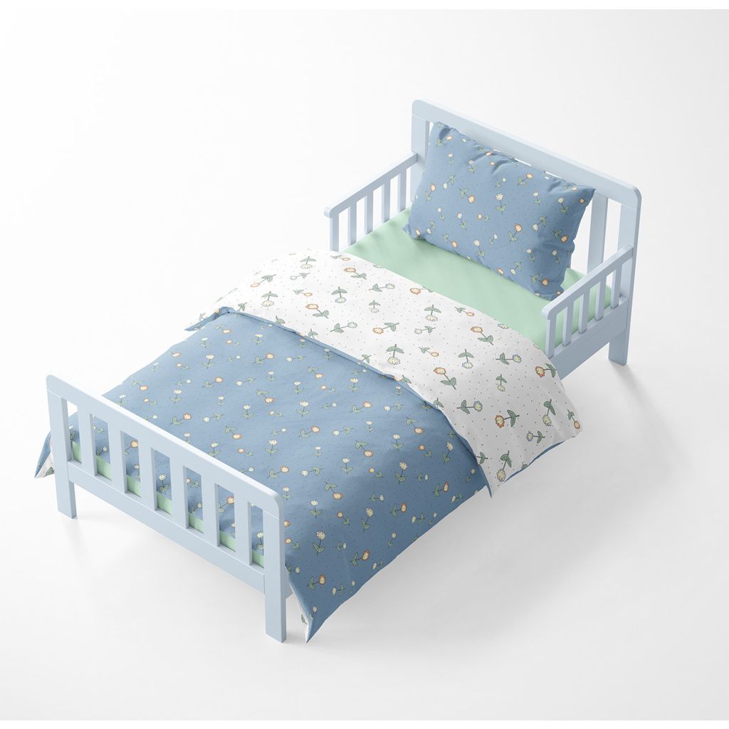 Dětské povlečení do postýlky – Kytičky – tmavě modrá/bílá