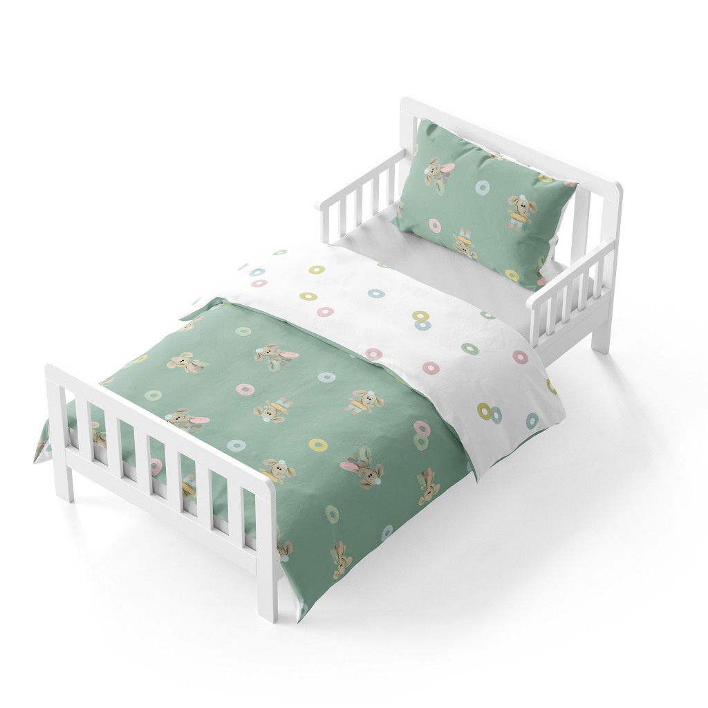 Dětské povlečení do postýlky – Sloníci – mint