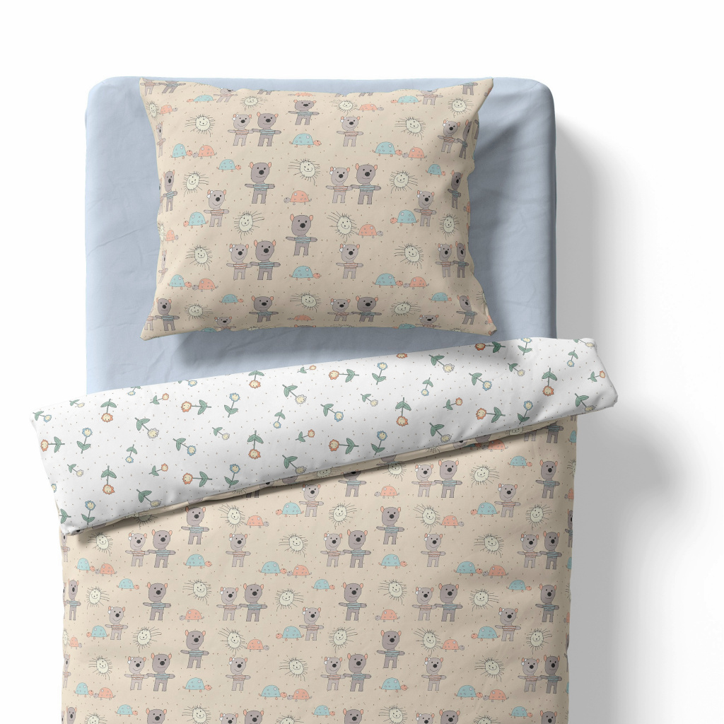 Dětské povlečení – Medvídek a želva – béžová/bílá
