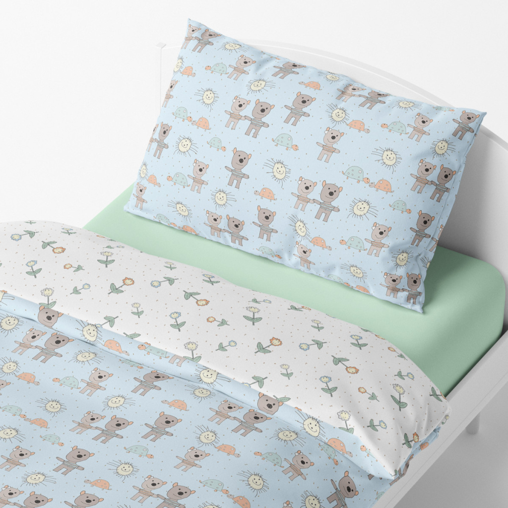 Dětské povlečení – Medvídek a želva – světle modrá/bílá