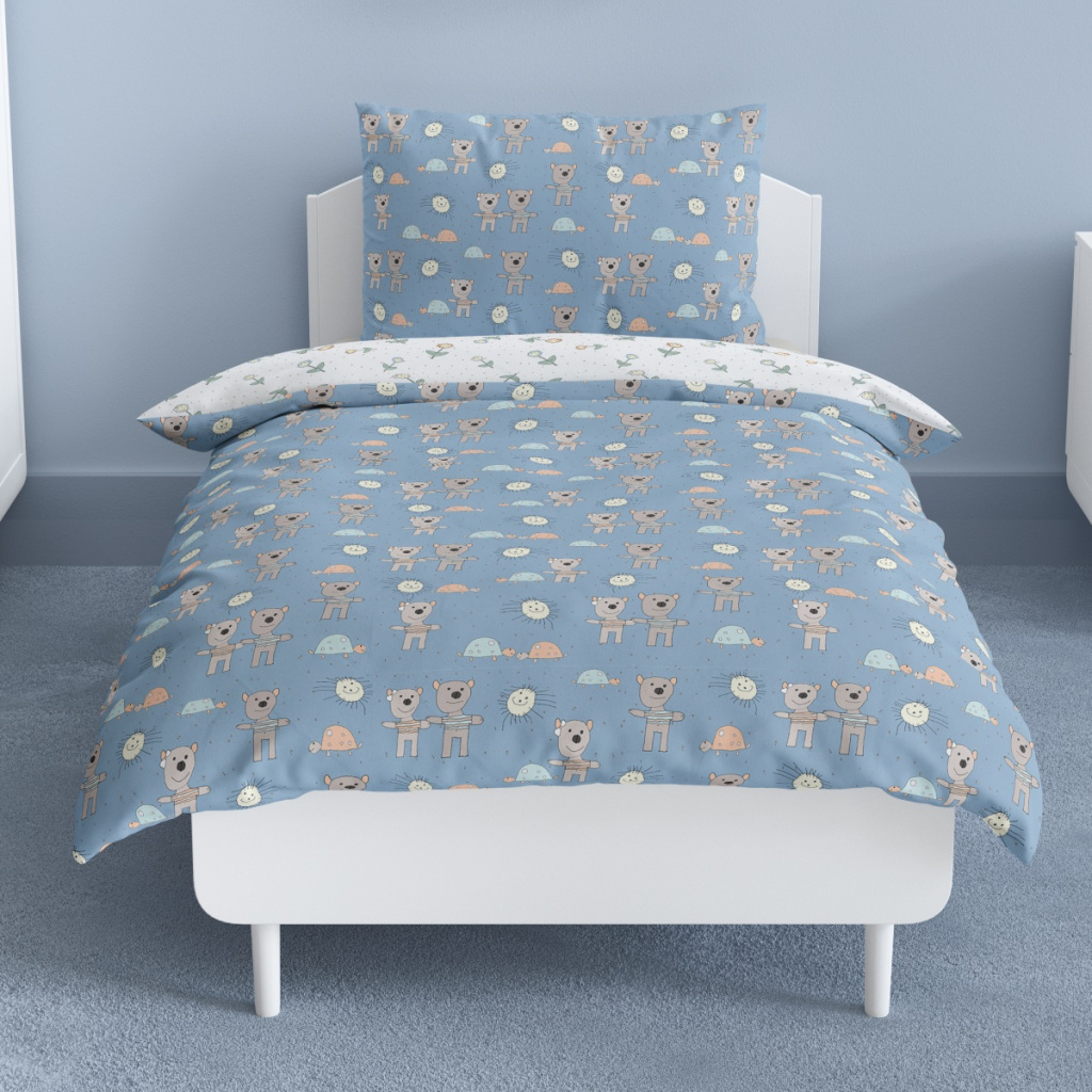 Dětské povlečení – Medvídek a želva – tmavě modrá/bílá