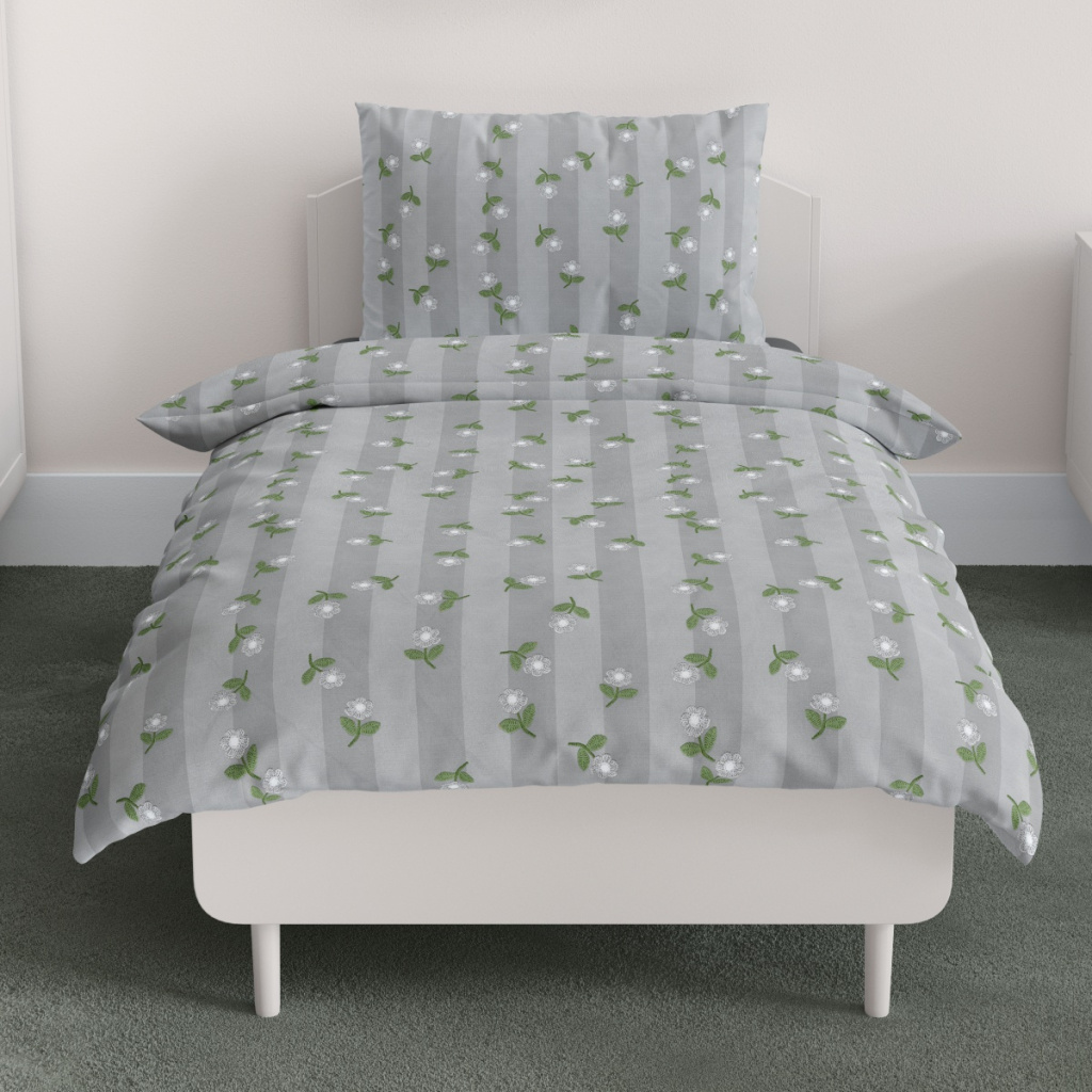 The duvet cover measures 140 x 200 cm and the pillowcase measures 90 x 70 cm. The bed linen is equipped with a practical zip fastening.