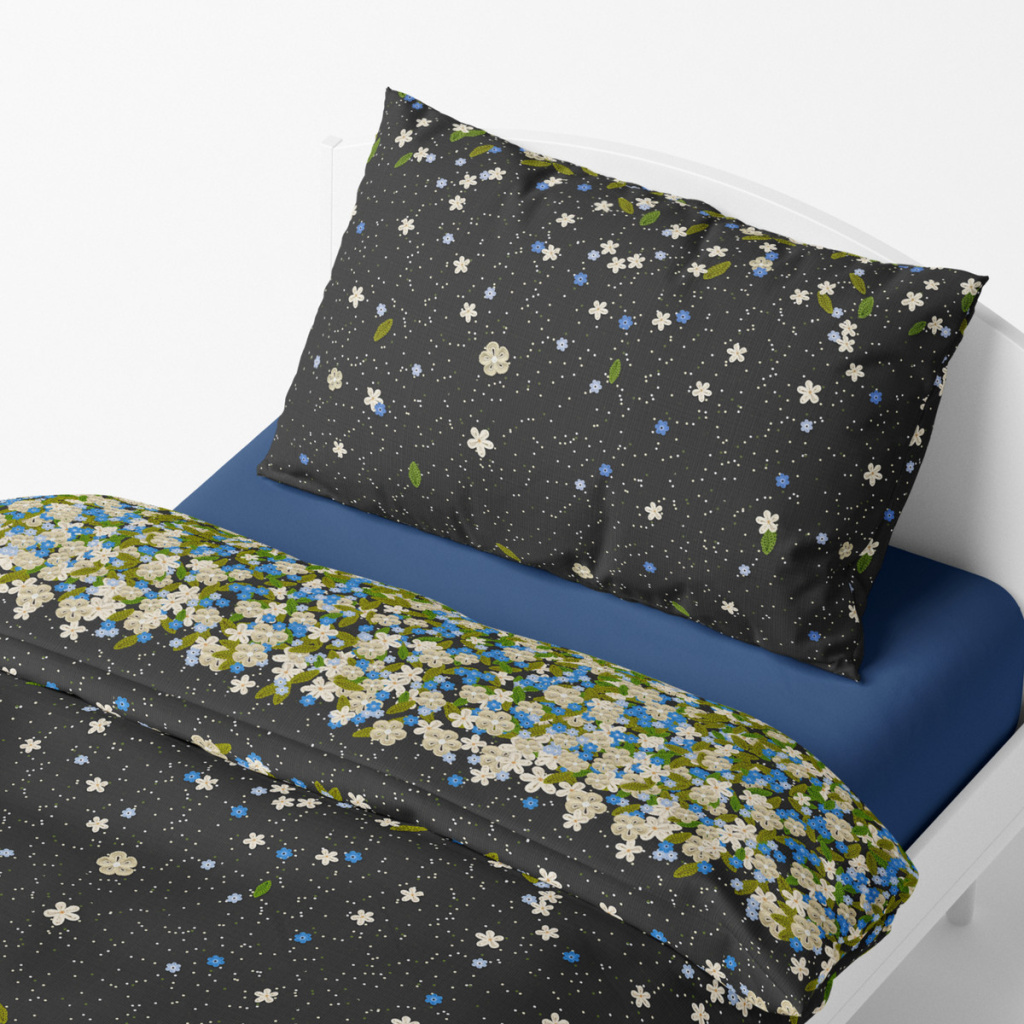 The duvet cover measures 140 x 200 cm and the pillowcase measures 90 x 70 cm. The bed linen is equipped with a practical zip fastening.