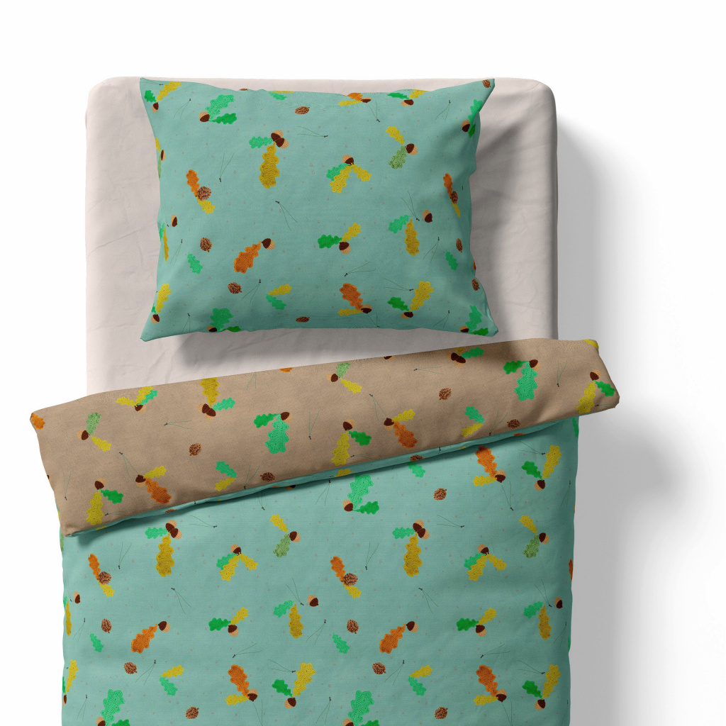 Povlečení pro dospělé – Dubové listí – mint/pouštní